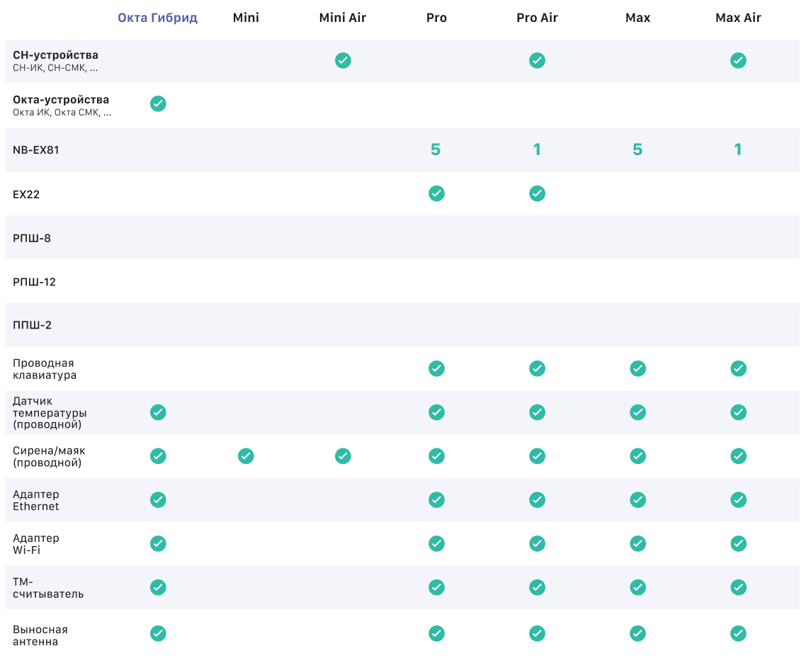 Совместимость приборов и периферии Приборы текущего поколения: Окта, Nord (Mini, Pro, Max) Приборы предыдущего поколения