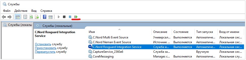 Сохраните изменения и перезапустите службу C.Nord Rosguard Integration Service: